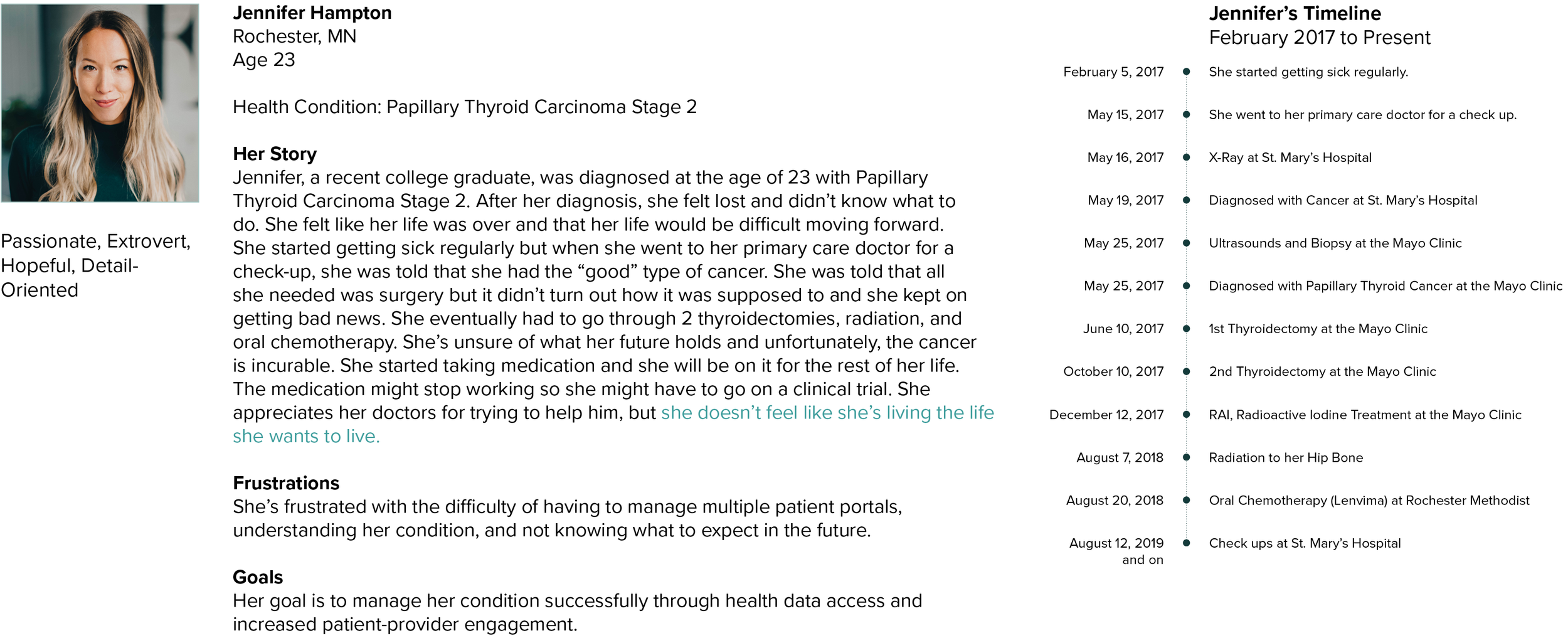 I created a persona to resemble the white space of designing for patients who are diagnosed with a chronic condition at a young age, along with the challenges faced by older adults.