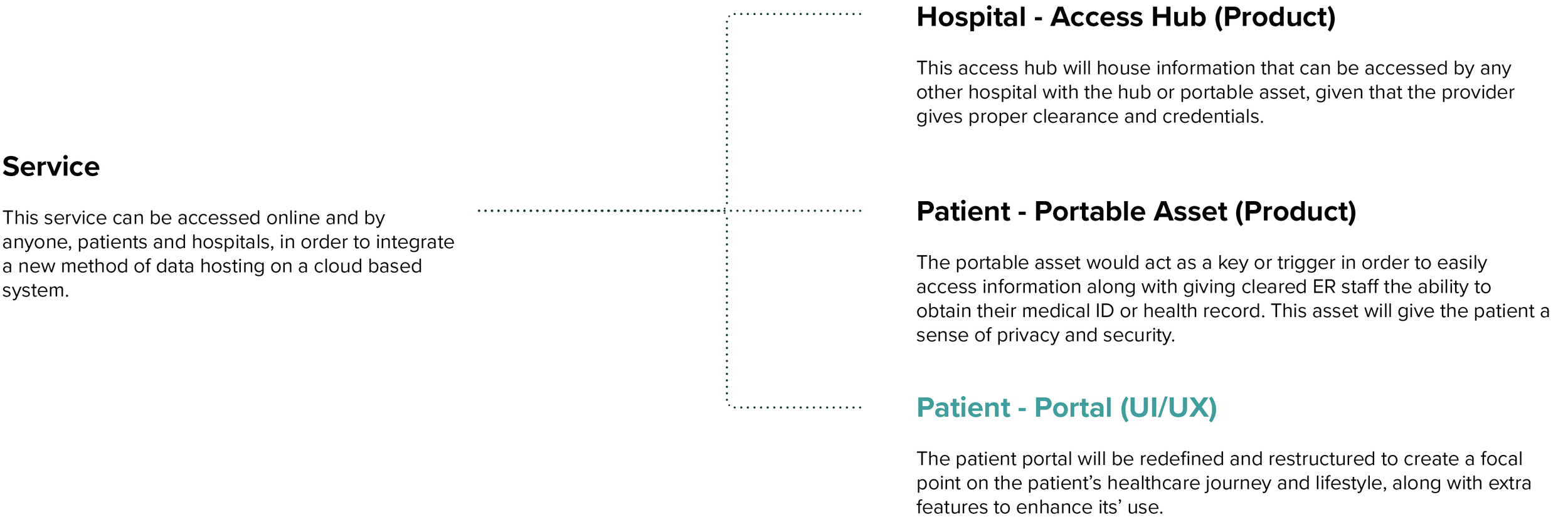 My focus was on the systematic approach for creating a service that offers a product for the healthcare provider and patient, along with a new and improved patient portal.