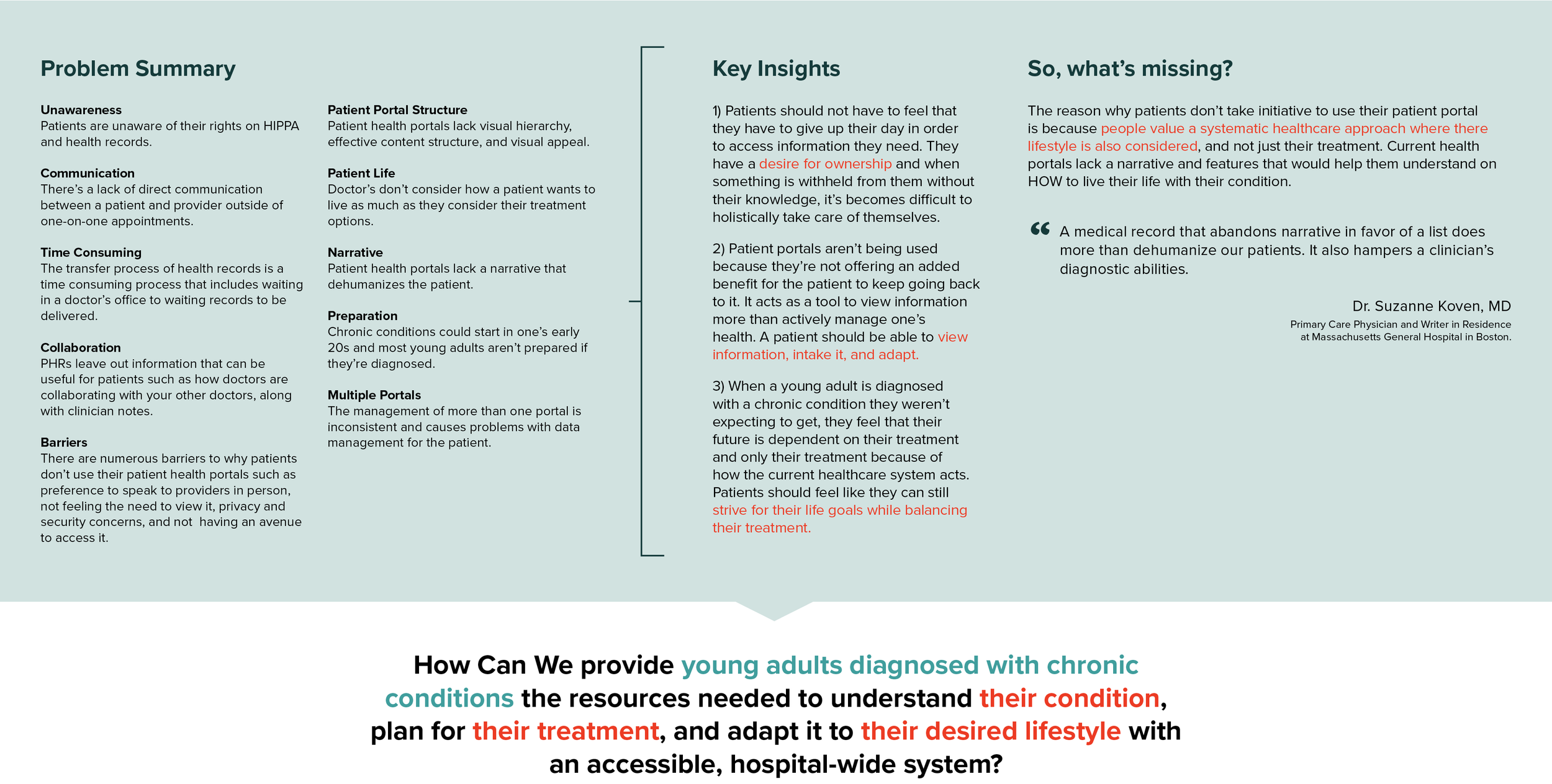 To wrap up my research, I created a problem summary which led to 3 key insights and a How Can We statement to drive my design in the right direction.