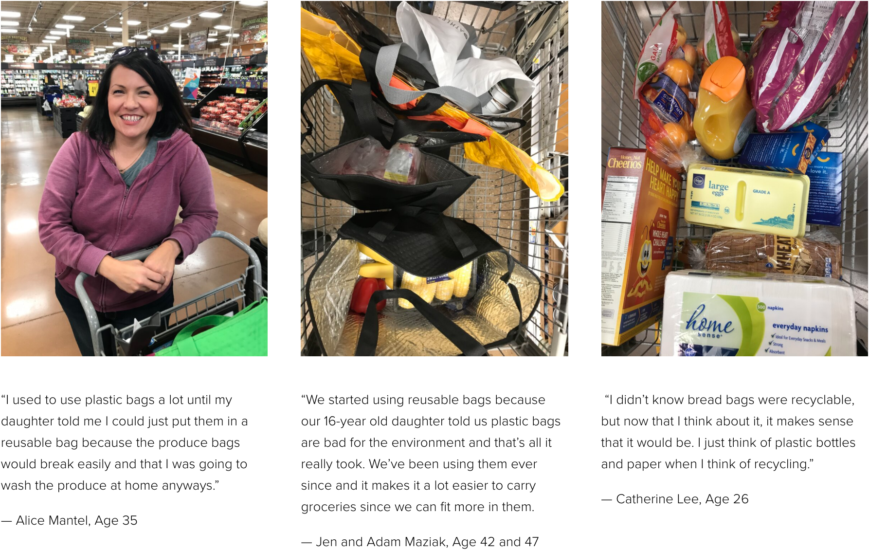 Most customers come into the store considering what they need to buy, how much they’ll spend, and how long they have to shop. With grocery shopping being a deliberate task, recycling is at the bottom of their priority list so we wanted to understand why that’s the case and their current knowledge on recycling plastic film.